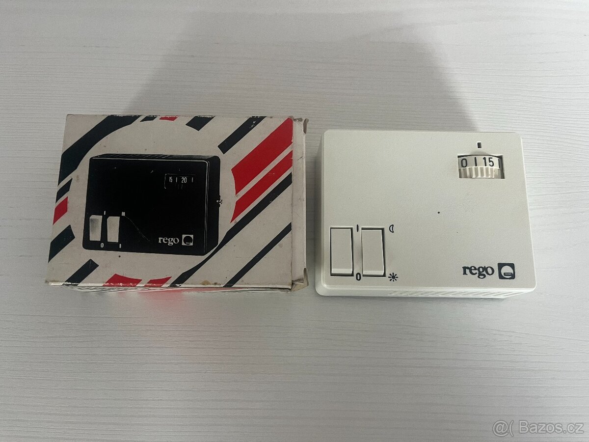 Nepoužitý prostorový termostat REGO- typ 97201, je určen pro regulaci elektrických a elektricky ovládacích topných systémů s ovládacím napětím 220 V, 50 Hz