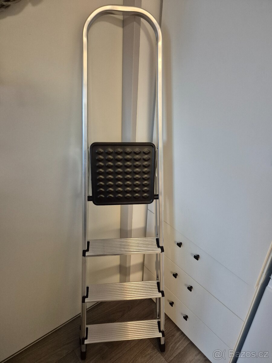 Prodám nové skládací schůdky - zvolená špatná velikost, potřebuji vyšší. Výška posledního stupně je na fotkách. Koupeno v Bauhausu, účtenku můžu přiložit.
