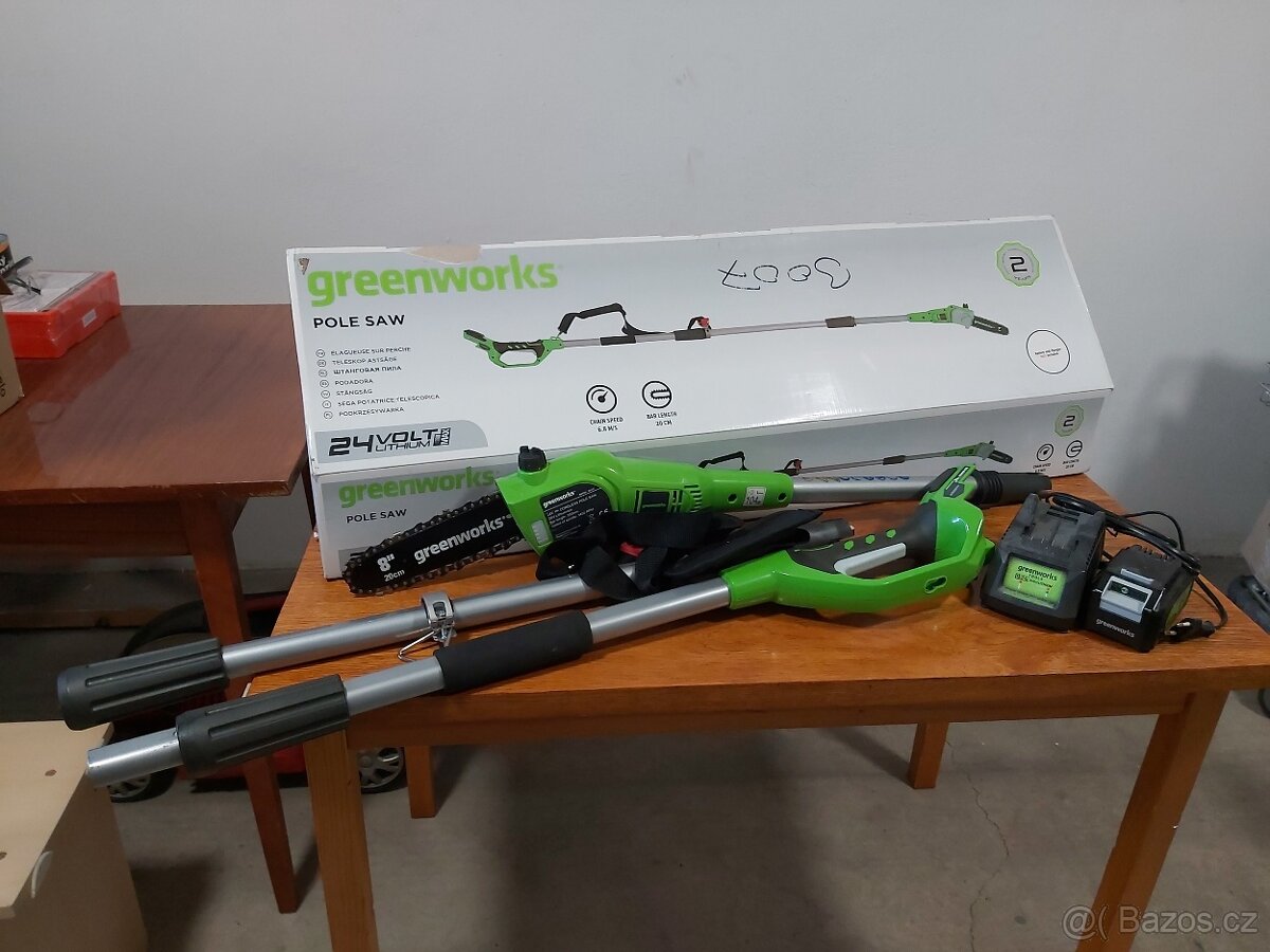 Prodám málo používanou aku pilku na tyči (2 délky) určenou na prořezávaní stromků s baterkou a nabíječkou + olej.
