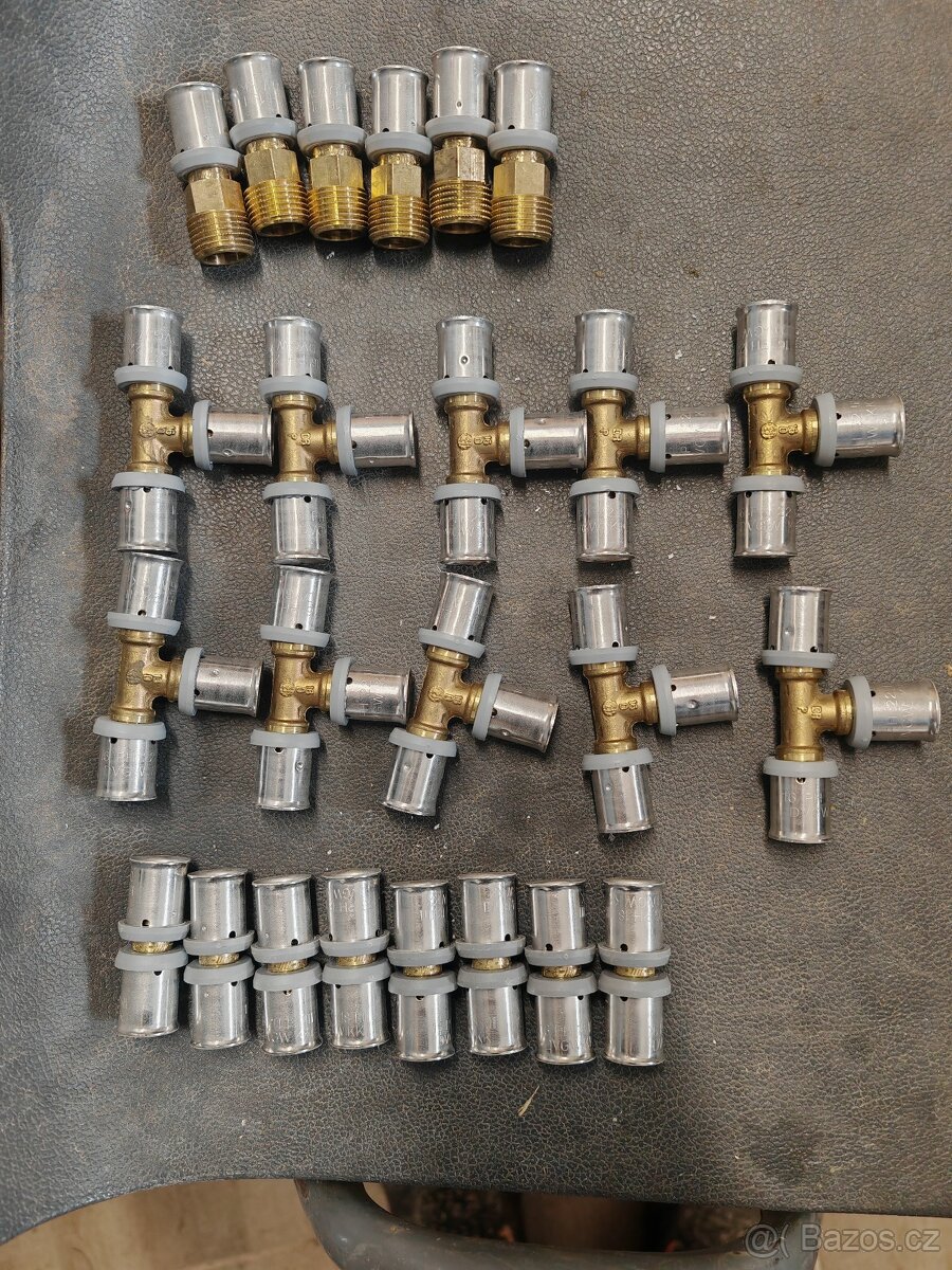 Prodám díly k podlahovému topení. Viz foto.Spojky,Téčka a šroubení G1/2".vše pro 16mm trubku. Jen jako celek. 500Kč za vše.