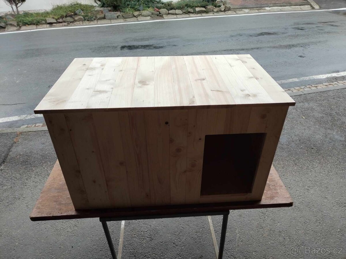 Prodám novou boudu pro psa,hoblované falcované desky tl.20mm,rozměr 115x66x70cm. Vchod pro pejska 45x30cm.