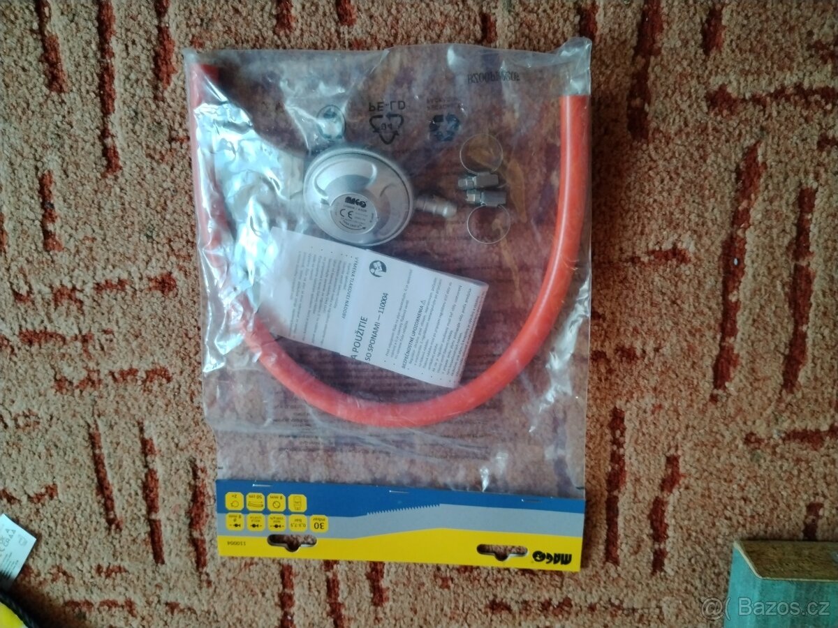 Prodám nový plynový regulátor s hadicí a sponami viz foto.