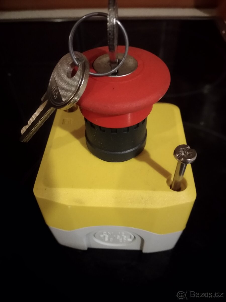 Prodám nové nepoužité stop tlačítko s aretací a zámkem v krabičce. Kontakty NO a NC. Napětí 250V 50Hz. Proud 10A. Krití IP65. 2 x klíč. V případě zájmu můžu poslat poštou, balikovnou nebo zasilkovnou. Celkem 9 ks. Prodám i jednotlivě. Cena je za kus. Inzerát je platný do smazání.