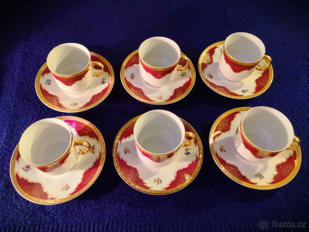 Prodám retro sadu 6 porcelánových šálků (karlovarský porcelán).