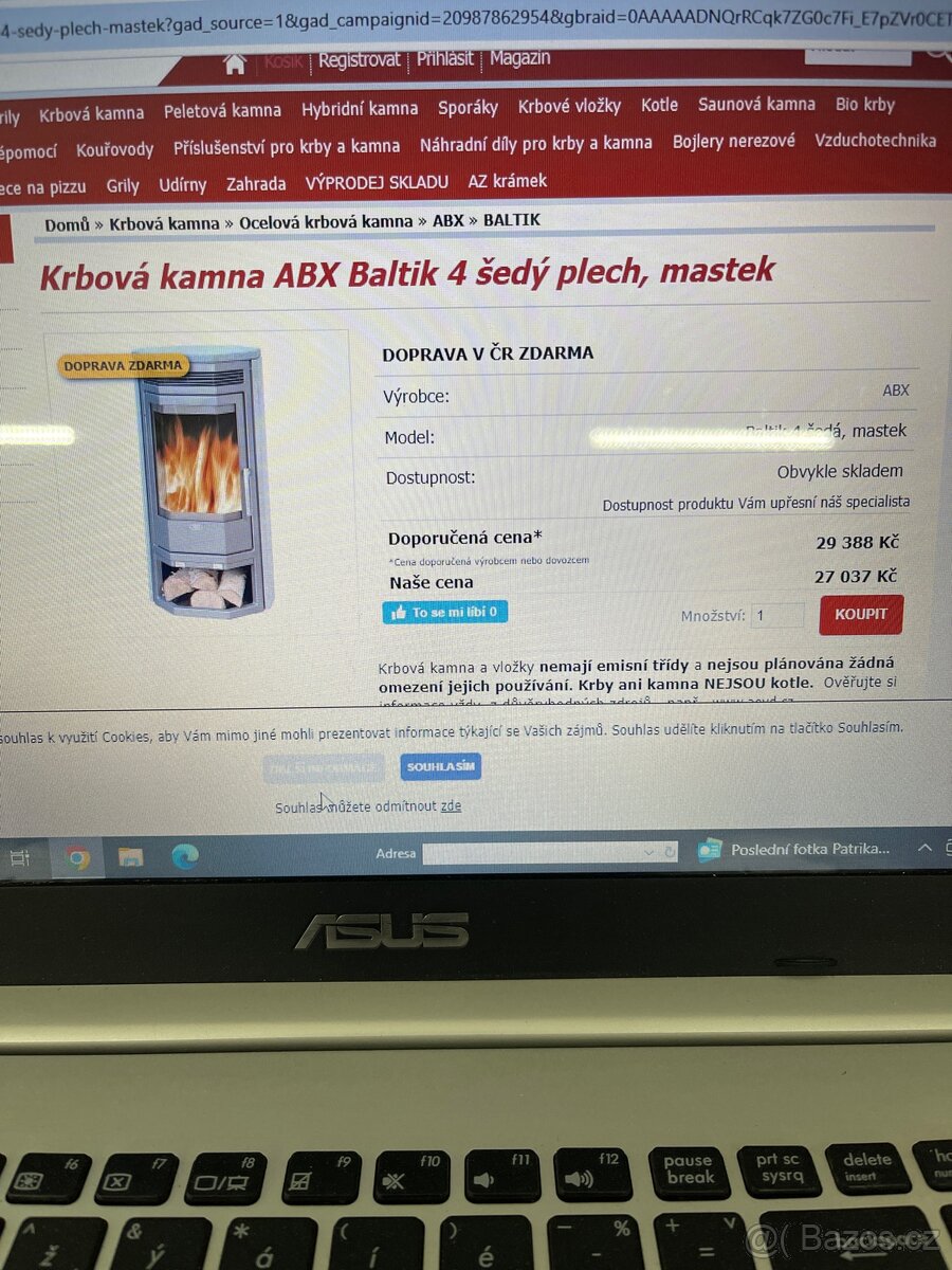 Prodam litinova krbova kamna 8 kw - [23.4. 2026]Prodam litinova krbova kamna 2 sezony pouzivana. myslim velmi dobrý stav puvodni cena 26 000 kc. Pouze osobni odber a dost sily jsou těžké. Zde je original objednavky. ázev Kód zboží Dostupnost Množství Cena/ks Celková cena
