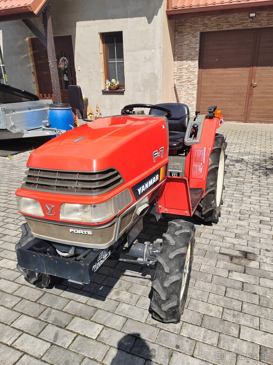 Prodám Japonský malotraktor YANMAR F7, Diesel, vodou chlazený TŘÍVÁLEC, výkon 17 koní,4x4, Traktor je v původním velice hezkém zachovalém plně funkčním STAVU, Nájezd 1076 motohodin. 6 rychlostí v před, 2 rychlosti vzad, asistent otáčení, Uzávěrka zadního diferenciálu. Naklápění zadních ramen, nivelizace. Zadní vývodová hřídel má 3 rychlosti. Traktor je plně funkční po výměně olejů a filtrů + nová baterie.. tříbodový závěs, K traktoru je možné dokoupit příslušenství,rotavátor, pluh, mulčovač atd... na traktor poskytnu záruku 1 rok.. Dopravu lze zajistit po domluvě po celé ČR. Cena je konečná včetně DPH.