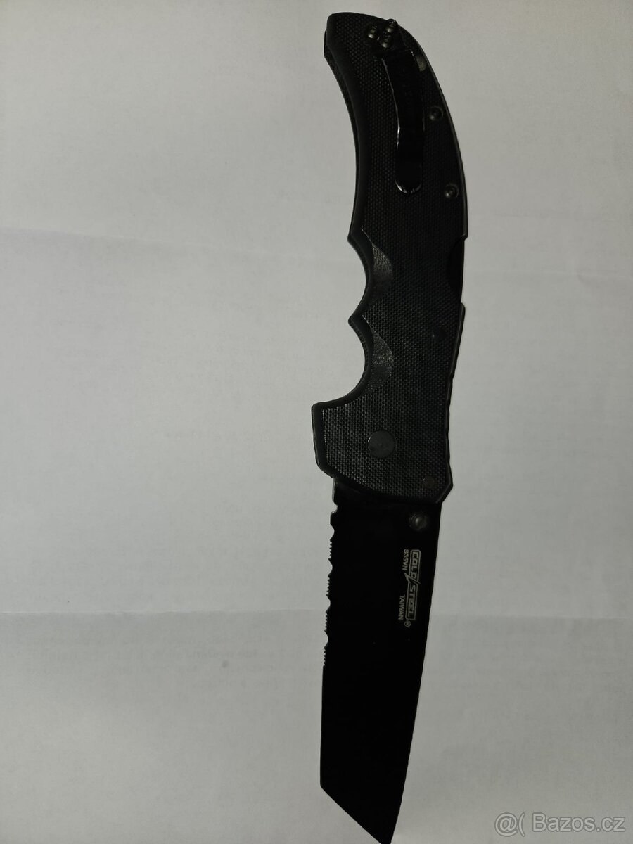 Značkový nůž Gold steel v černém provedení,přes půlku čepele zubaté ostří,délka čepele 10cm a váha 158g.