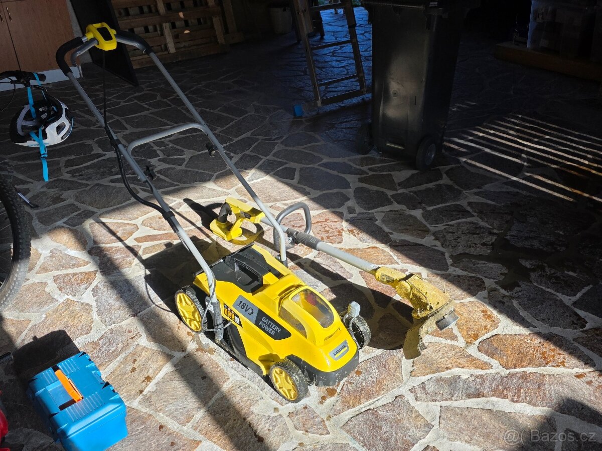Prodám sadu sekačky a vyžínače na trávu Karcher. Baterie nefunkční, potřeba koupit novou.