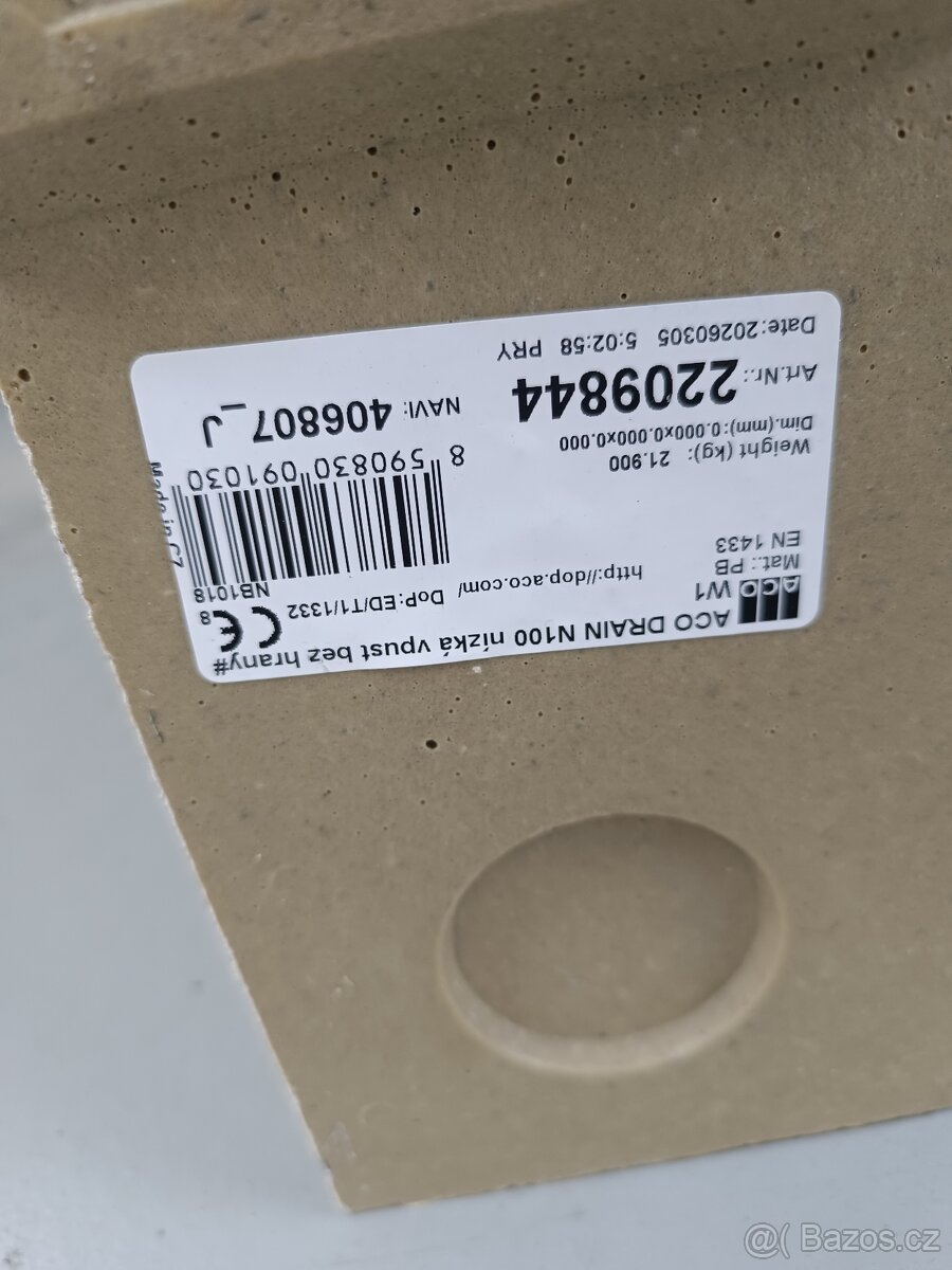 ACO drain žlab odtokový - TOP - [30.3. 2026]Prodám zcela nový ACO drain žlab 0,5m s výpustnou trubkou a litinovým roštem 3 kusy. Původní cena 1300,-Kč/kus