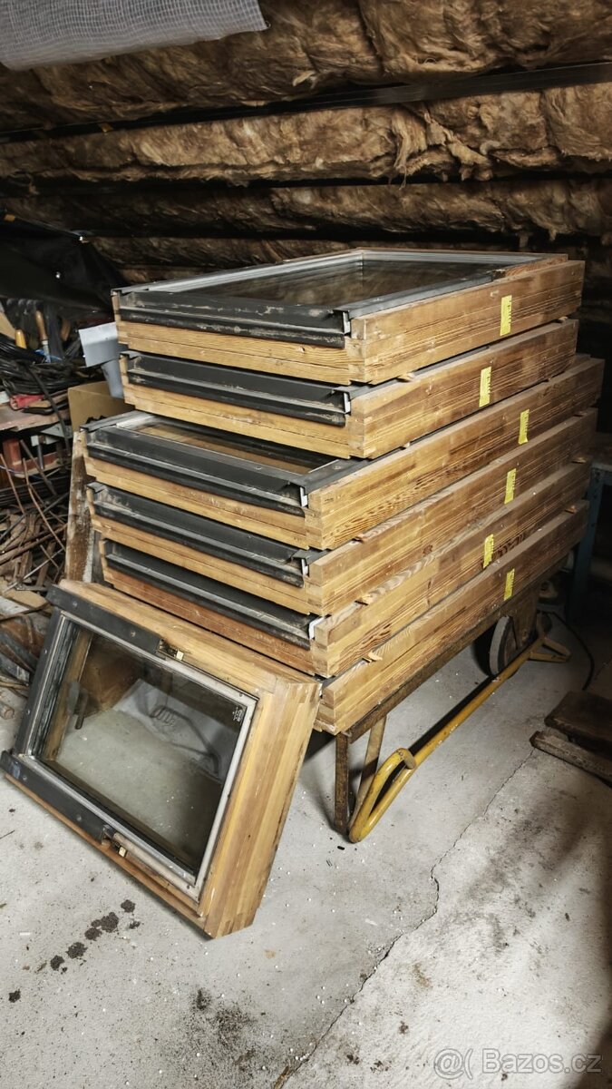 Střešní okna a lemování, cena 400,- za kus, malé 300,- za kus.