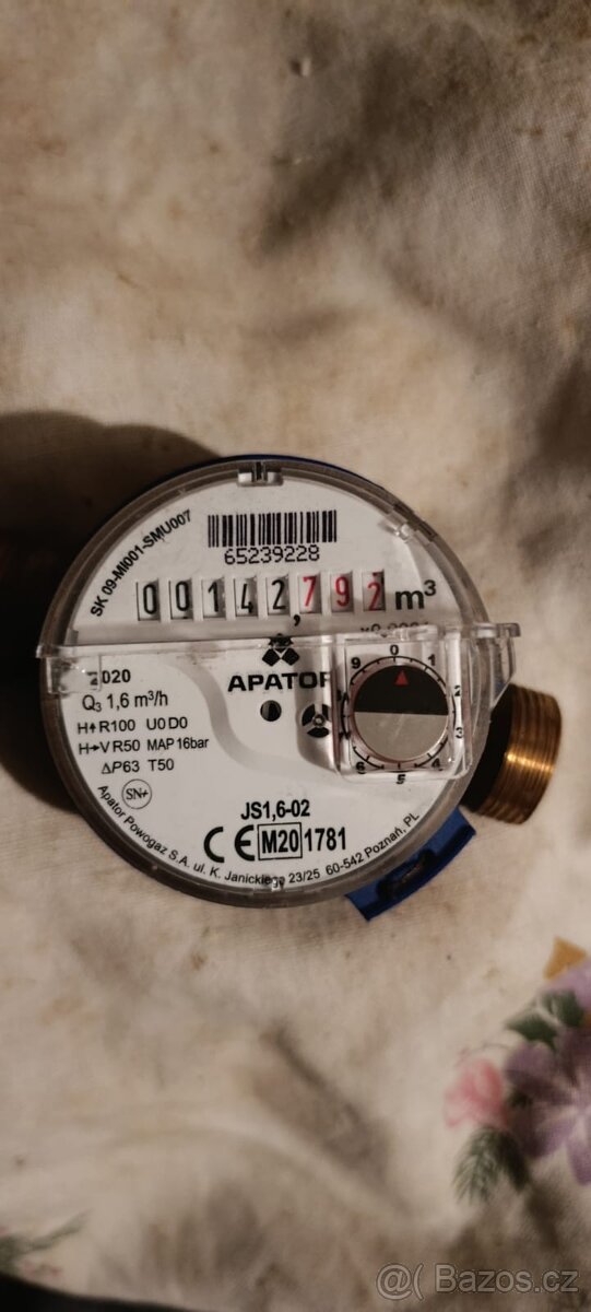 Prodám 9 bytových vodoměrů na studenou vodu. Cena za 1 vodoměr 100 Kč.