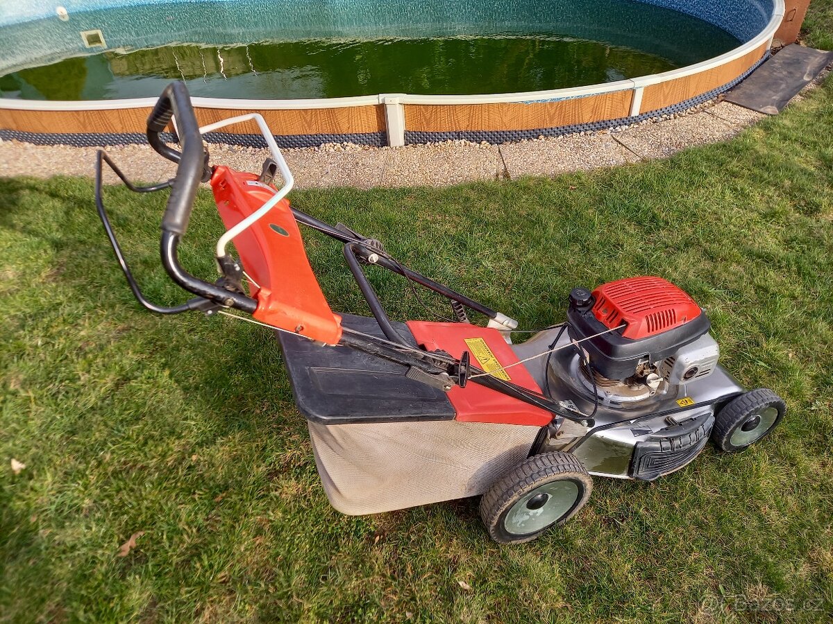 Bytelná konstrukce. Centrální nastavení výšky sečení ap.Záběr 53cm, kuličková ložiska.