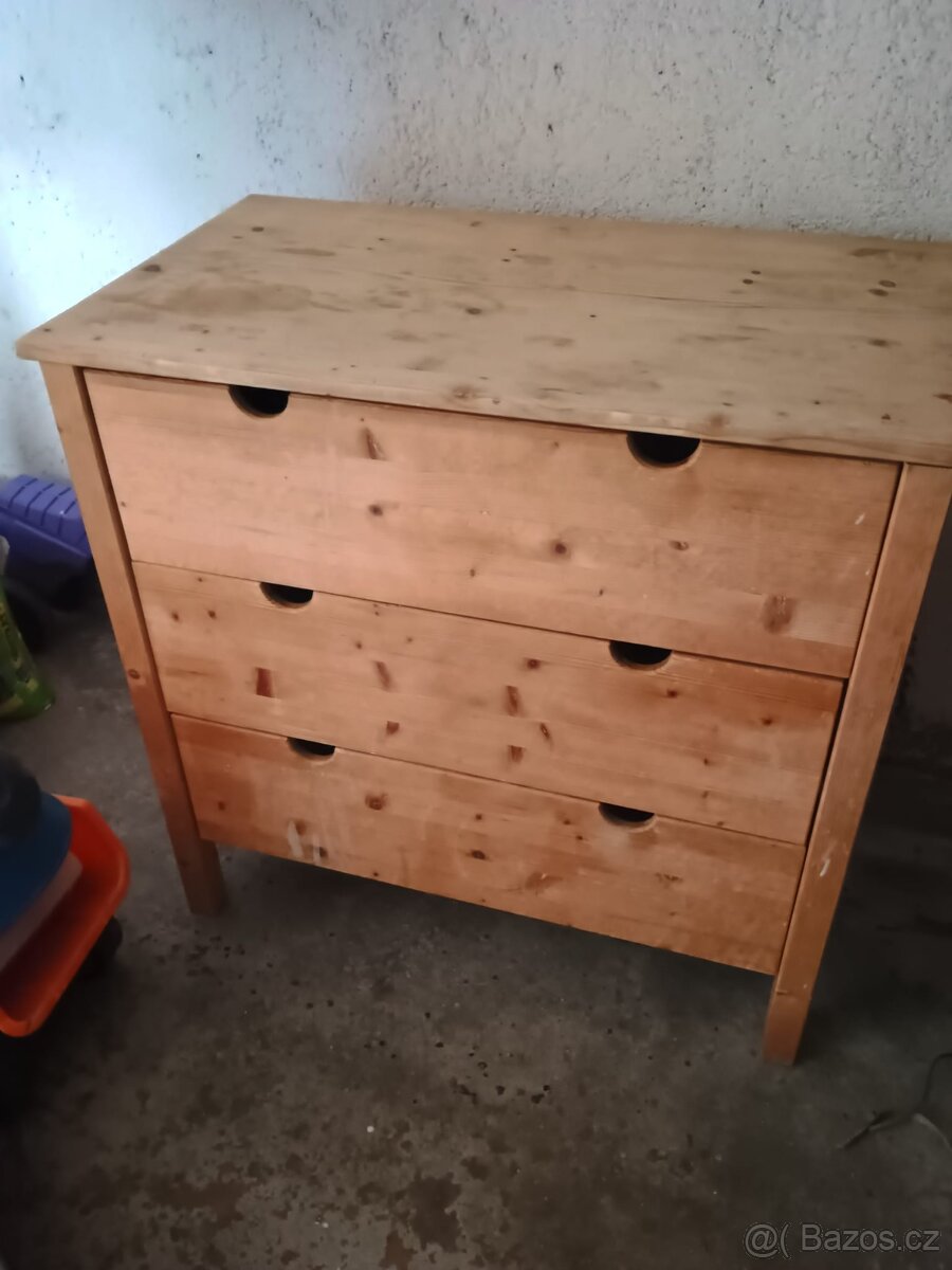 Klasická dřevěná komoda, dno spodní zásuvky je nutno připevnit. Předání Dobříš, okr. Příbram.
