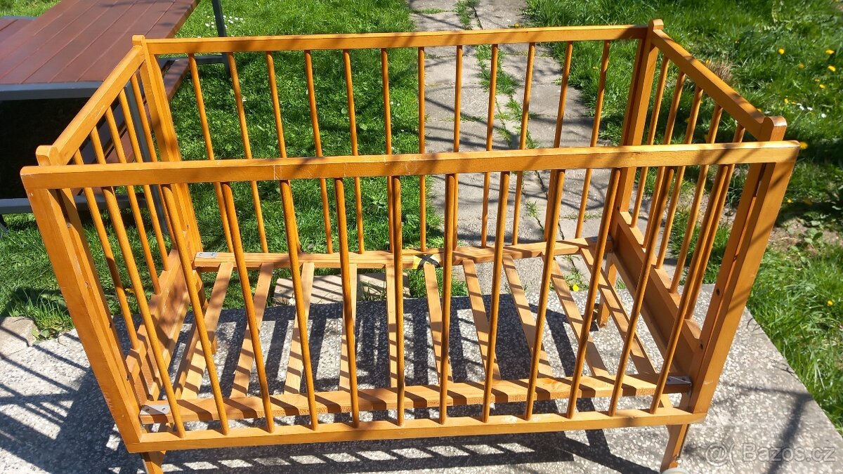 Dobrý den.Prodám dětskou retro postýlku, má lehce prasklí rošt pro madraci. Cenu navrhněte .Na SMS neodpovídám.