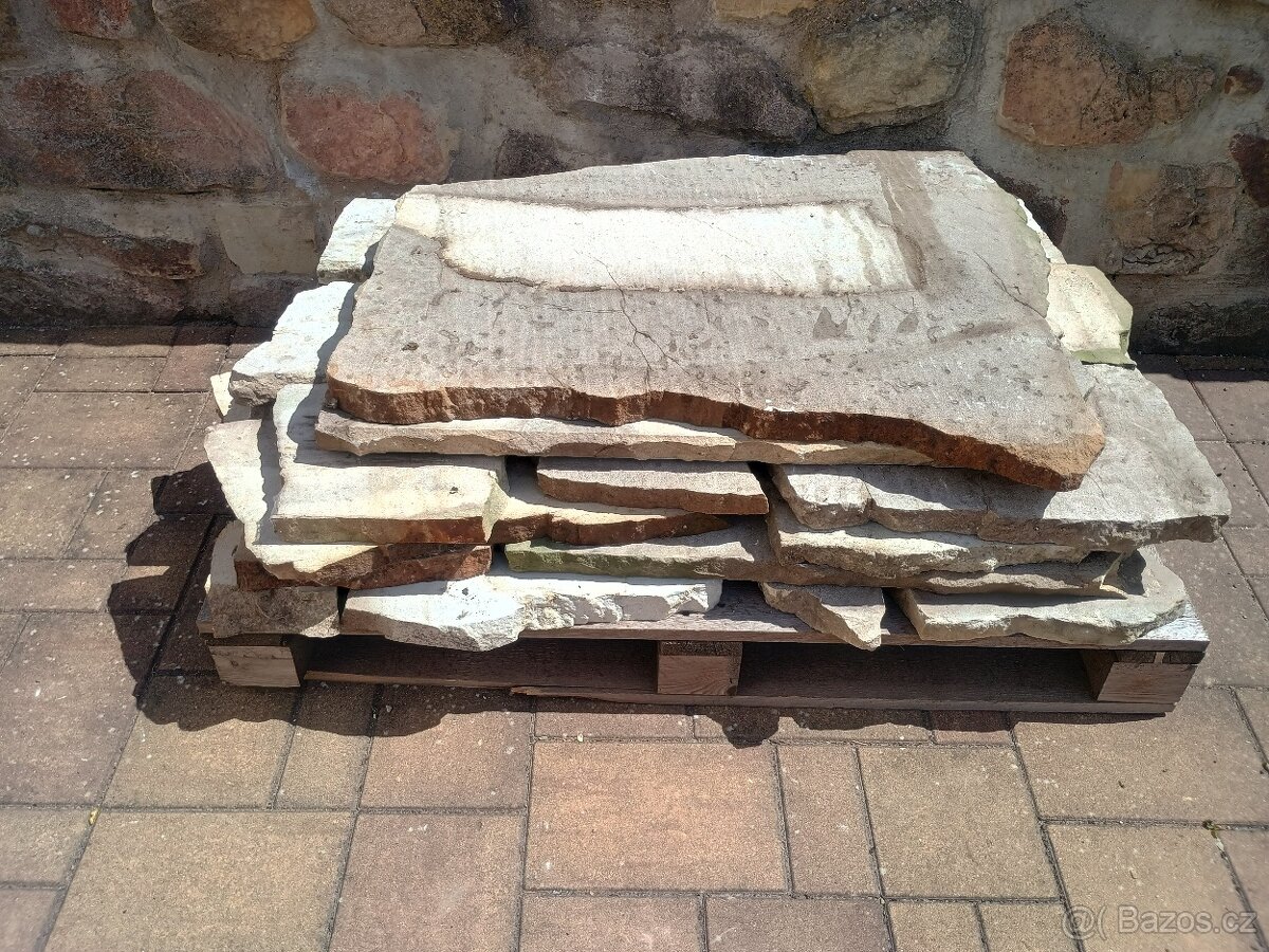 Pískovec opracovaný - [24.4. 2026]Prodám pískovcové kameny, pouze celou paletu najednou, mohu ji naložit ještěrkou, tel 608_958_959. (vyhl. pískovec, kvádry, kámen, pískovce, hakliky)