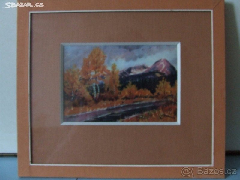 horská krajina, výška 20 cm, šířka 24 cm, samotný obrázek 8,5x13,5. - 50Kč/kus