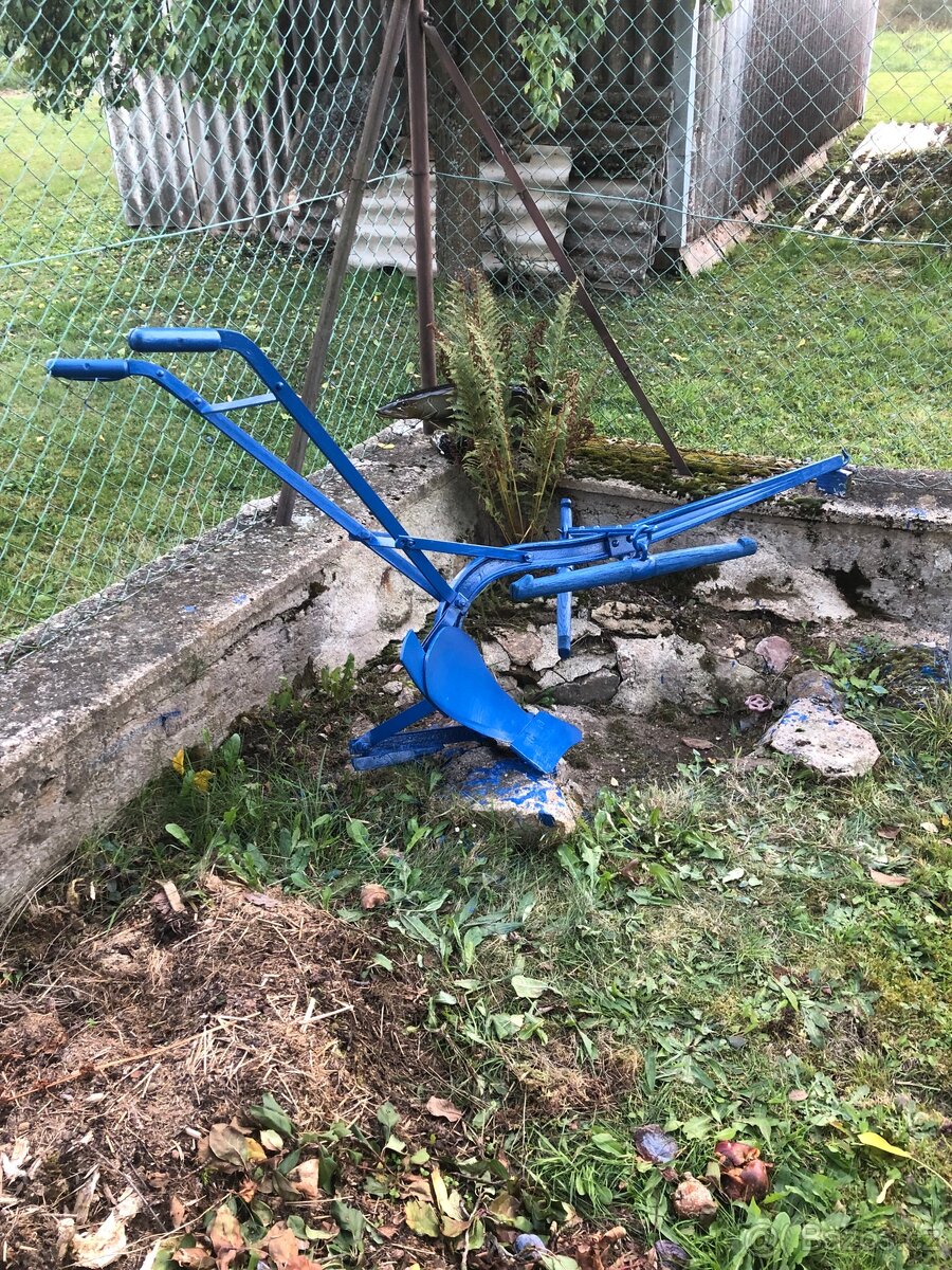 Historický zemědělský stroj - [8.3. 2026]Nabízím k prodeji historický zemědělský stroj (přední podvozek ke koňskému pluhu). Skvělý jako stylová dekorace na zahradu, ke skalce nebo před chalupu.