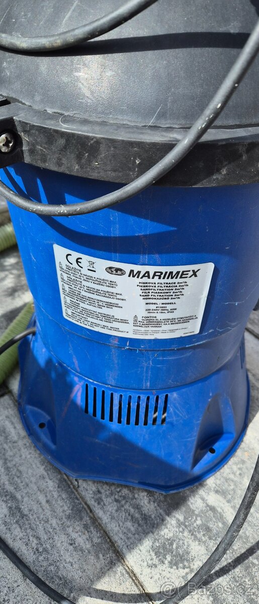 Použitá plně funkční písková filtrace Původní spodek(černý)je hlučné ložisko,tak jsme koupily nový (modrý) použitý 1sezonu,jinak nové hadice ještě v krabici nechám k tomu i staré ty jsou take funkční. Dale skimmer. Koupily jsme menší. Tu co hučí ložisko k tomu daruji na díly.