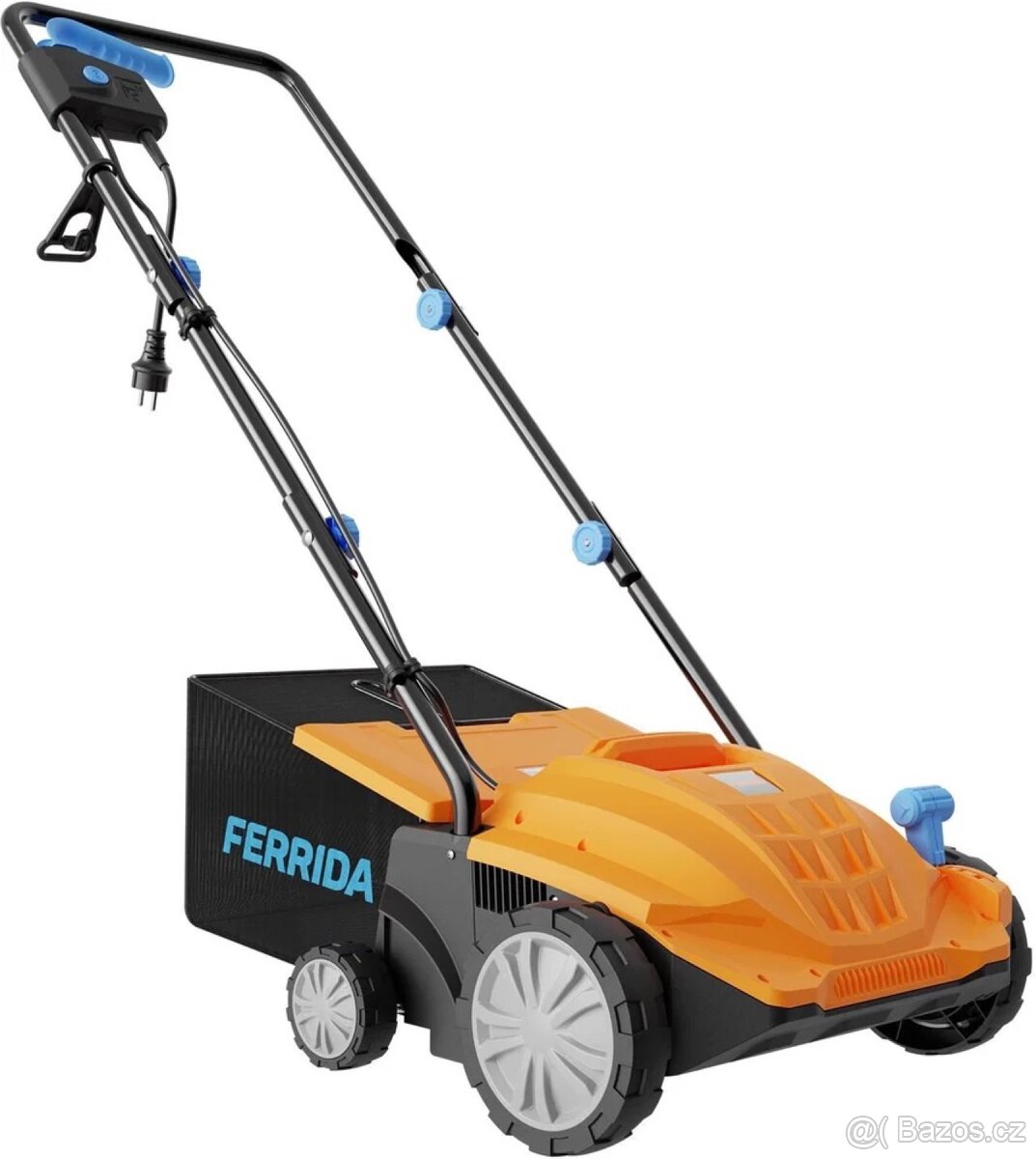 Vertikutátor elektrický, 1500W, záběr 32cm, 2 výměnné válce (vertikutační s 16 noži, provzdušňovací s 20 pružinami), centrální nastavení pracovní hloubky ve 4 pozicích (-12, -8, -4, +4mm), objem sběrného koše 30l, sklopná rukojeť a madlo na přenášení, držák kabelu, hmotnost 9.3kg