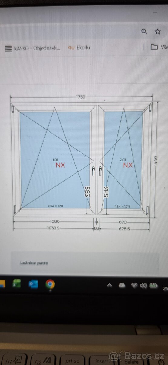 Plastová okna nová špatně zaměřené profil 81mm. Dvoukřídlé dva kusy. Šířka 1750mm výška 1440mm. Barva bílá. Cena za kus