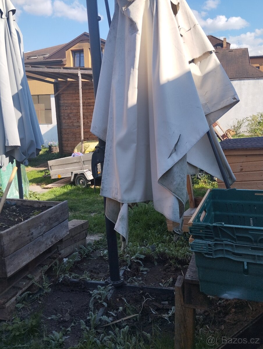 VELKÝ 4 METRY OTOČNÝ, JE POTŘEBA DOKOUPIT NOVOU PLACHTU, BEZ DLAŽDIC, ODVOZ ZE STRANČIC