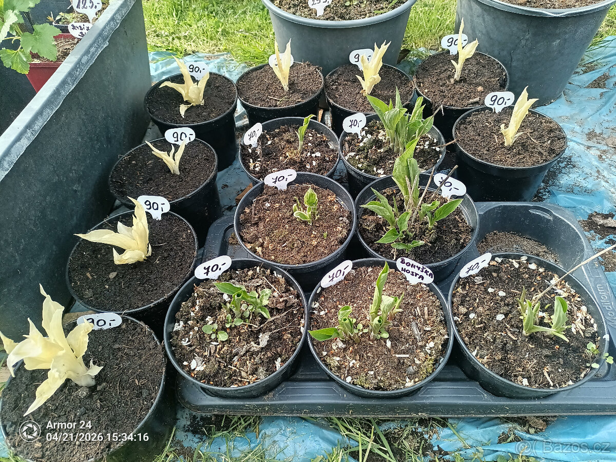 Prodám Bohyšky viz foto ve 2 litrovém květníku.Bohyška (Hosta) je impozantní trvalka, která vyniká zejména díky svým dominantním stálezeleným listům a není náročná na pěstování. Má velké dekorativní zelené listy, srdcovitého tvaru s výraznou strukturou. Listy jsou uspořádané do tvaru růžice. Bohyška má bezlisté, vysoké a silné stonky, na kterých vyrůstají květy. Bohyšky vytváří vysoké, rozložité trsy.Trvalka bude prosperovat v polostínu či stínu. Ocení živnou, humusovou, lehce propustnou půdu. Půdu je třeba udržovat vlhkou. Bohyška je mrazuvzdorná až do -24 °C.Cena Bohyšek od 70 do 90 Kč.Odběr možný kdykoliv po telefonické domluvě.Na SMS nereaguji.Od 12 do 15 ti hodin nejsme na telefonu.Tel:606683783-Podívejte se i na mé další inzeráty,třeba se Vám něco hodí.