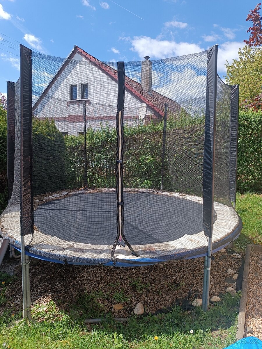 Trampolína 4m God Jump - [22.4. 2026]Prodám velkou trampolínu zn. GOD JUMP o průměru 4m. Vše plně funkční viz foto.. 1 rok stará ochranná síť. Nějaká povrchová rez na tyčích. Nic zásadního. Bude chtít koupit nový kryt přes pružiny. Trampolína je v rozloženém stavu.