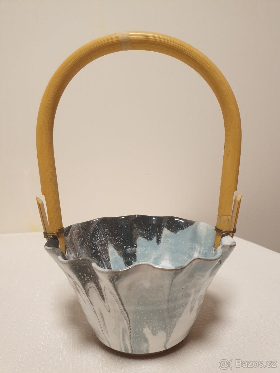 Prodám keramický košíček (misku) s proutěným ouškem.