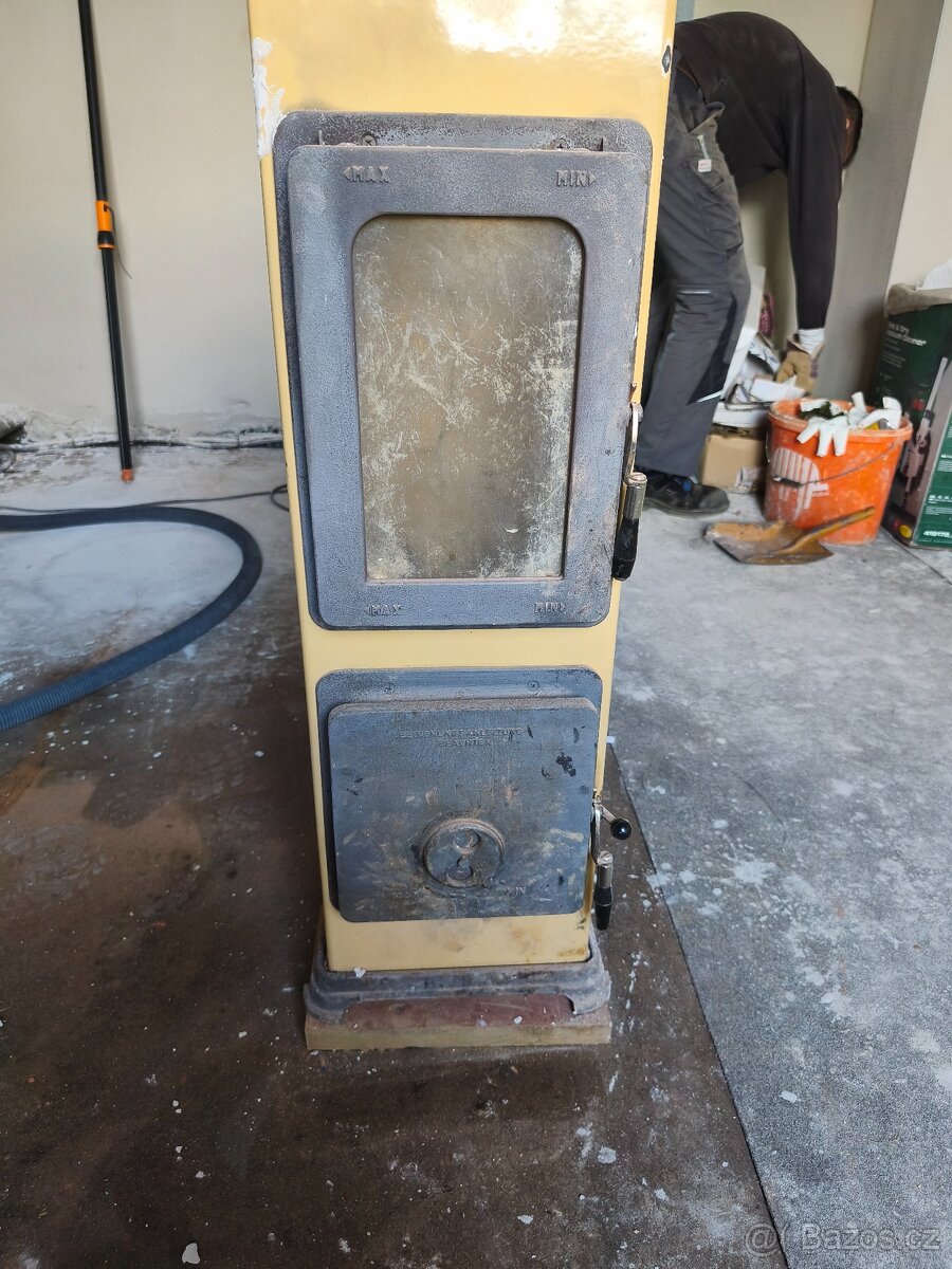 Prodám kamínka používané na stavbě. Přidám roury na připojení cca 5m, kolena, teplotní výměník a redukci 180 na 200. 4KW + 3KW výměník.