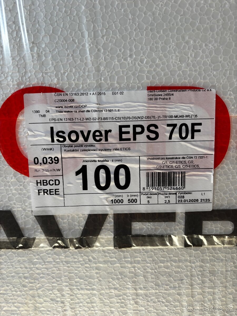 Prodám podlahový polystyren Isover EPS 200/80 - [21.3. 2026]prodám podlahový polystyren Isover 2 balíky EPS 200 80 mm (3 m2/bal.) pořizovací cena 800,-Kč nyní za 300,-Kč/balík