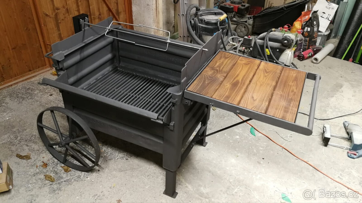 Prodám masivní na zakázku vyrobený gril na kýtu z bedny Mars BMW.