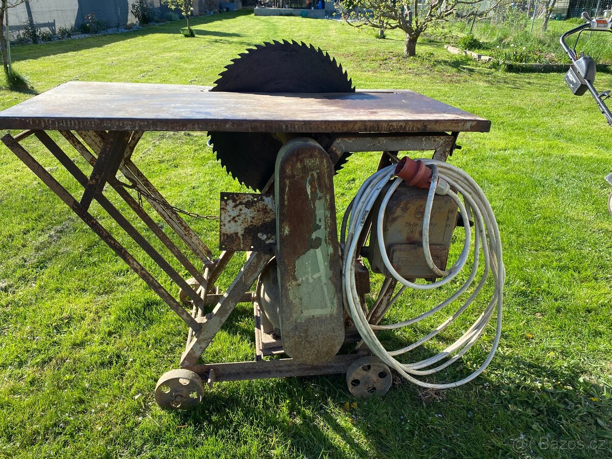 Prodám tovární cirkulárku motor 3kW, nový přívodní kabel 10m, plně funkční. Kolíbka na řezání větších polen.