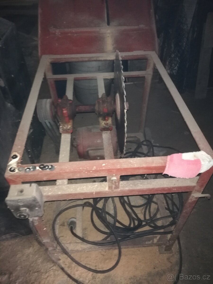 Se dvěma kotouči dlouhým kabelem zástrčka 16 A čtyř kolíková,motor neznámého výkonu-štítek nejde přečíst ale výkon je dobrý řeže bez problémů.