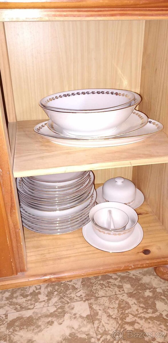 Jídelní sada 25ks, 6 mělkých talířů, 6 hlubokých talířů, 6 malých talířků, 2 mísy, 1 ovalny talíř, solnička s pepřenkou, pak asi miska na omáčku, pak mi to prijde jako maselnice, a tvarovany velky talíř. Československa výroba EPIAG bez vad, nepoužitá po domluvě možné dovézt okoli Klatov, do Plzně, Prahy