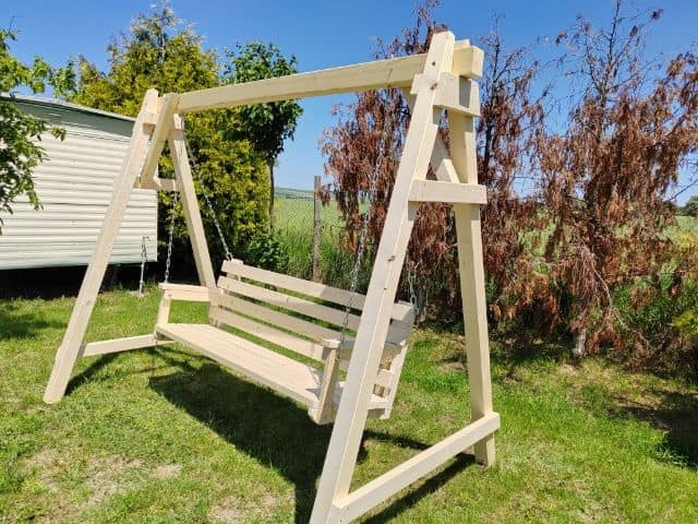 Dřevěná houpačka - [13.4. 2026]Prodám dřevěnou houpačku. Výška 206cm, šířka 240cm, síla trámků 7x12cm. Prodej Velké Meziříčí.