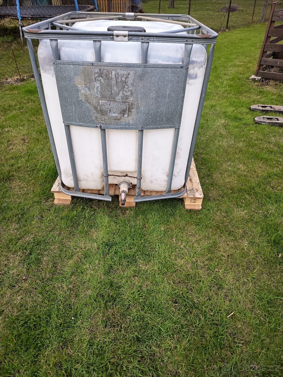 Prodám ibc nádrž 1000l na vodu na dřevěné paletě, používáno na dešťovou vodu