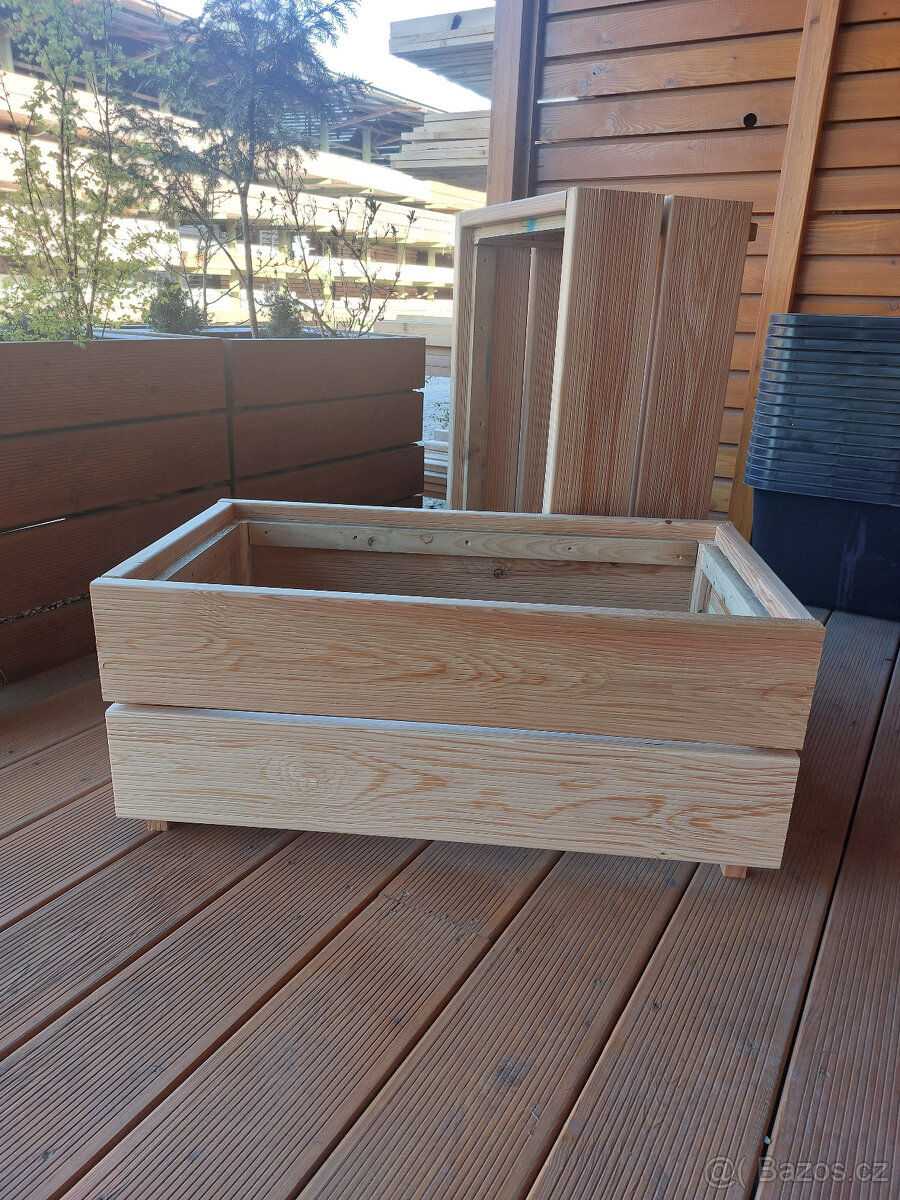 Nabízím k prodeji truhlíky z modřínových terasových prken. Rozměr 44 x 78 x 33 cm za 580 Kč, široký “kaskáda” rozměr 82 x 78 x 33 cm za 630 Kč. Vnitřní plastová nádoba rozměr 65 x 35 x 29 (65 litrů) za 185 Kč. Všechny uvedené ceny jsou bez DPH. Osobní odběr Králíky 1, Nový Bydžov 504 01. Více info ve všední dny 06 : 30 - 15 : 00 hod, polední pauza 11 : 15 - 11 : 45, informace: 728 053 533, pozlerova-drevo@seznam.cz Hotovost s sebou