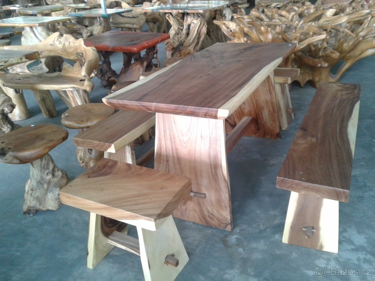 Prodam originalni set(stul,2xlavice,2xstolice)z tropicke Akacie.Nove,cena 35 000 Kc