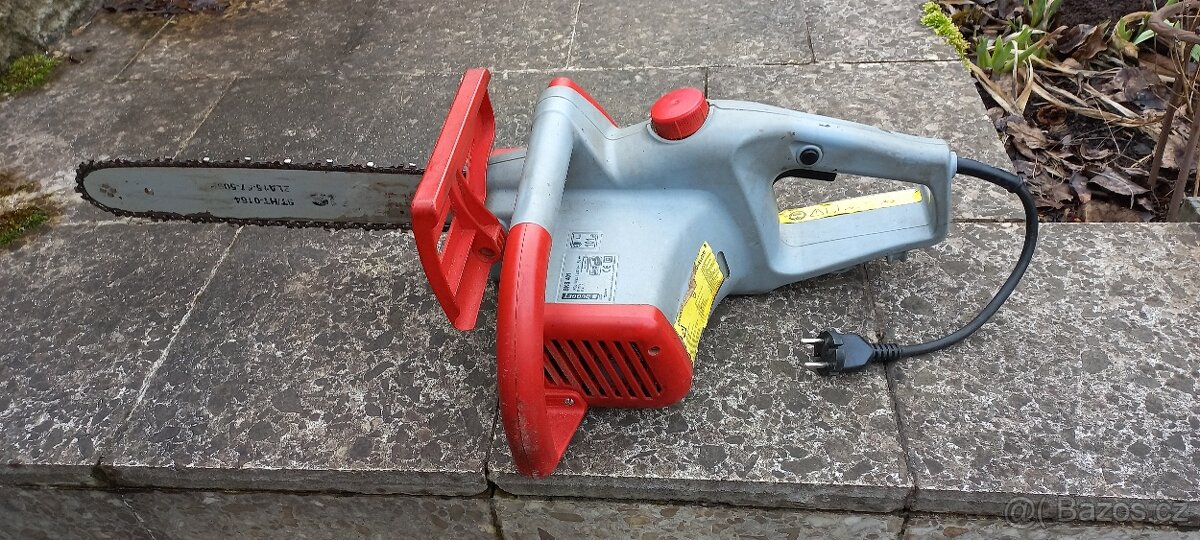 Prodám starší elektrickou řetězovou pilu.Značka Budget, 1800 W/230V, 50 Hz, lišta 40 cm, celková délka 80 cm, plně funkční.