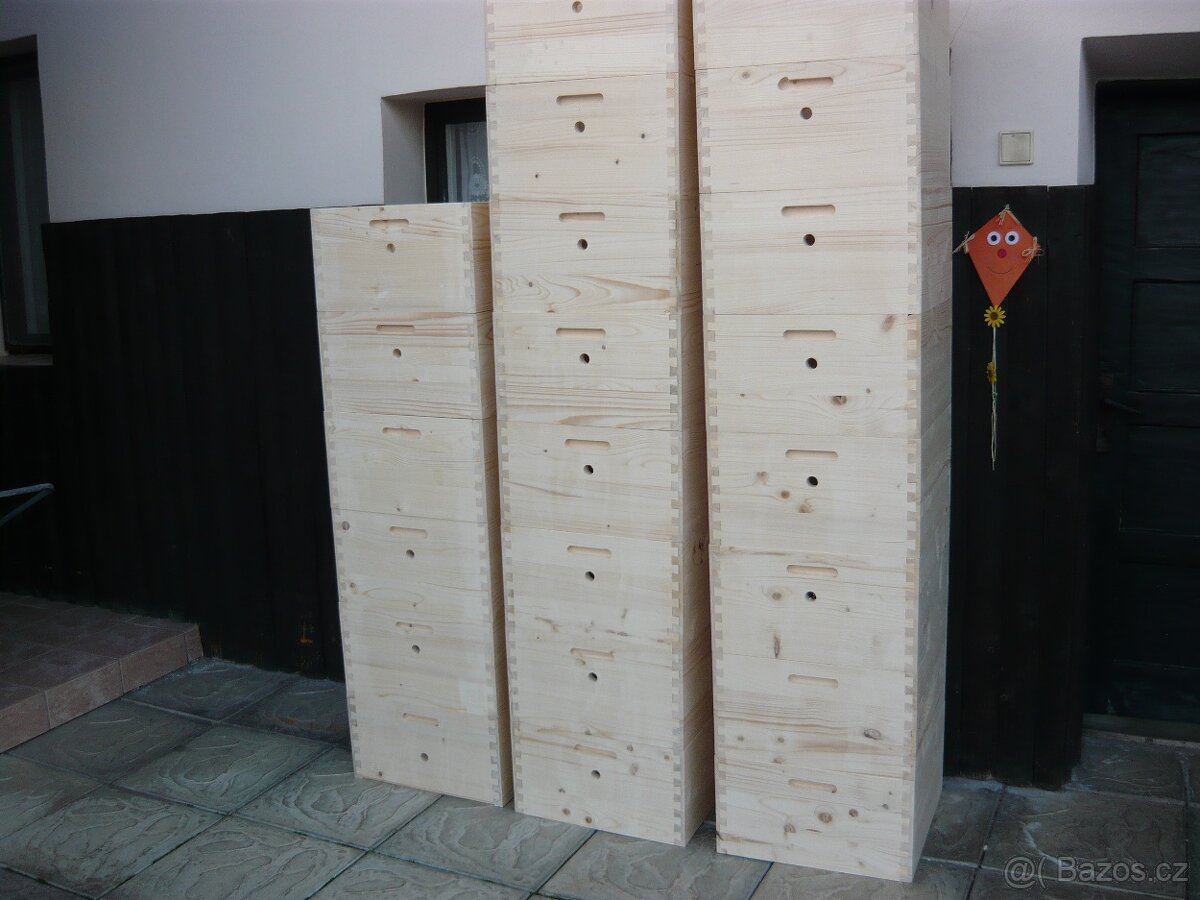 Prodám včelí nástavky celodřevěné z vejmutovky.Vyrobeno ze spárovky 25mm.Spoje jsou cinkované rybinovou frézou,lepeny voděodolným lepidlem D4/velmi pevné spojení/.Na rámky 39x24.Rozměr 455x455mm/venkovní/.Výška 250 mm.Studená stavba.