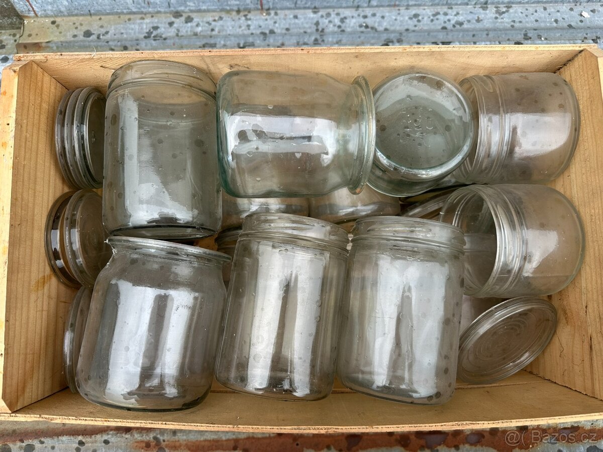 Prodám celoskleněné (vč. víka) zavařovací sklenice, objem cca 0,5 a 0,75 l, viz foto. Cena za komplet 100 Kč.
