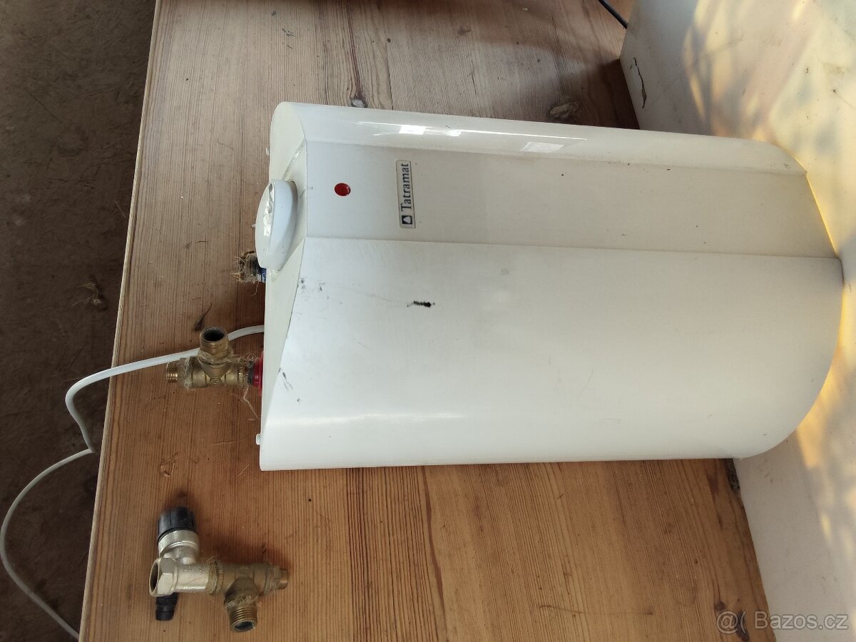 Téměř nepoužitý bojler 10 litrů s ventilem.