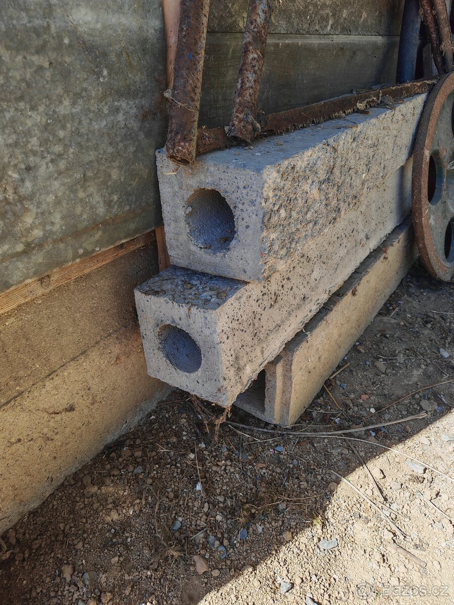 Nabizim 2x zelezobetonovy preklad 14x14x88cm (150kc/ks) a 2x zelezobetonovy preklad 14x14x178cm (300kc/ks). Uprostred kulata dira. Preklady jsou nepouzite, k dispozici ihned, vlastni odvoz.
