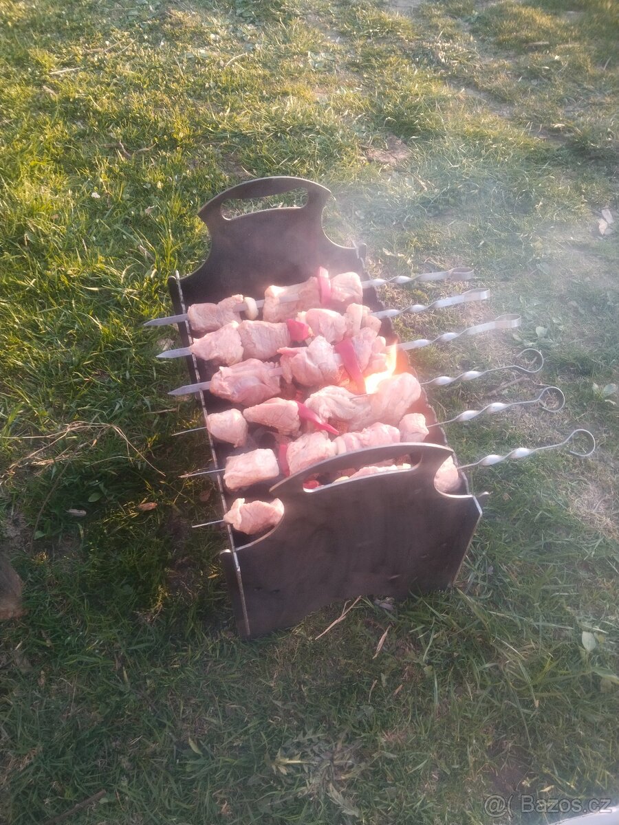 Mangálový gril skládací ocel 3 mm rošt, špíz Materiál:ocel válcovaná za tepla,tloušťka 3 mm Barva: černá matná Systém skládání:Rychlá montáž bez použití nářadí Ventilace: otvory ve spodní části zajišťují dostatečné proudění vzduchu Držáky:pohodlné boční rukojeti pro přenášení velký stabilní rošt s držadly umožňující grilování a standardní vaření
