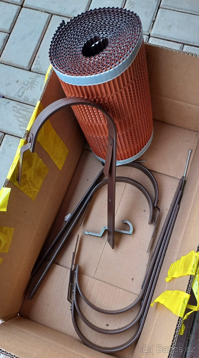 Prodám žlabové háky 339, RAL 8017, 6 ks - cena celkem 400 korun. Prodám nový hřebenový nárožní pás 310, barva tmavě hnědá, 5 m - cena 400 korun. Vše nové.