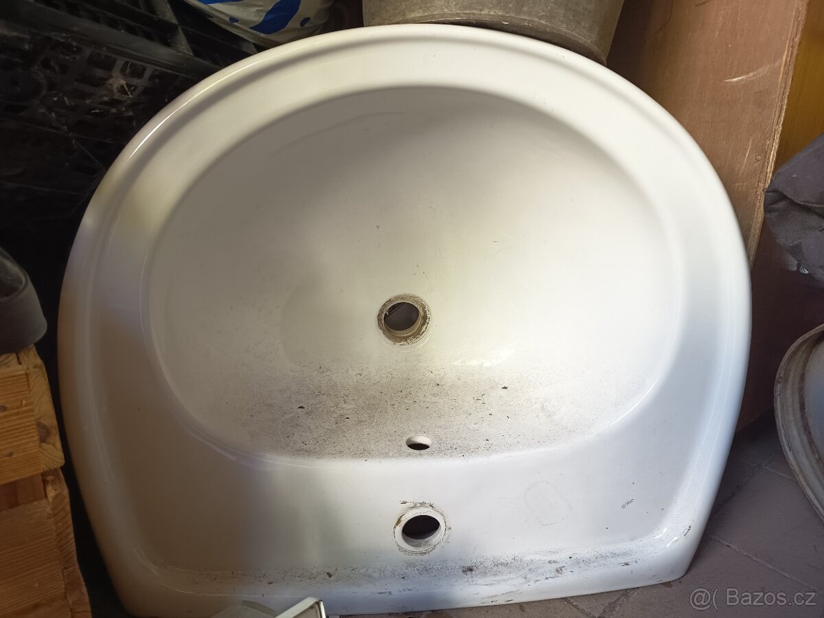umyvadlo 47x70 cm - [29.4. 2026]použité umyvadlo zn. CONCEPT 100 (ideal standard), včetně baterie, výpusti se zátkou, a šroubů pro upevnění umyvadla. Všechen materiál je od fa Ptáček. Lazura je popraskaná, ale vše ještě normálně funguje. Pořídili jsme nové, tak třeba ještě někomu p ...