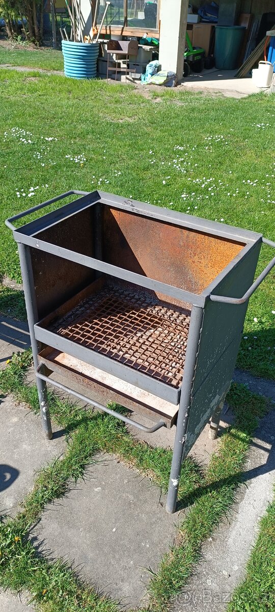 Víceúčelový zahradní gril - [27.4. 2026]Prodám funkční víceúčelový zahradní gril o rozměrech 180 x 120 x 40 cm, váha 60 kg. Lze grilovat na plochém roštu, otočném rožni s bočním topením, vařit v pekáči a lze i udit. Pořizovací cena 14 800 Kč. Nyní potřebuje jen natřít žáruvzdornou barvou. ...