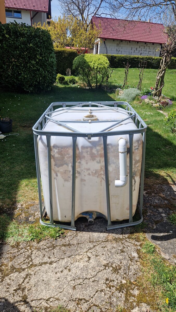 Ibc kontejner 1000l - [27.4. 2026]Prodám ibc nádrž 1000l na vodu na dřevěné paletě, používáno na dešťovou vodu