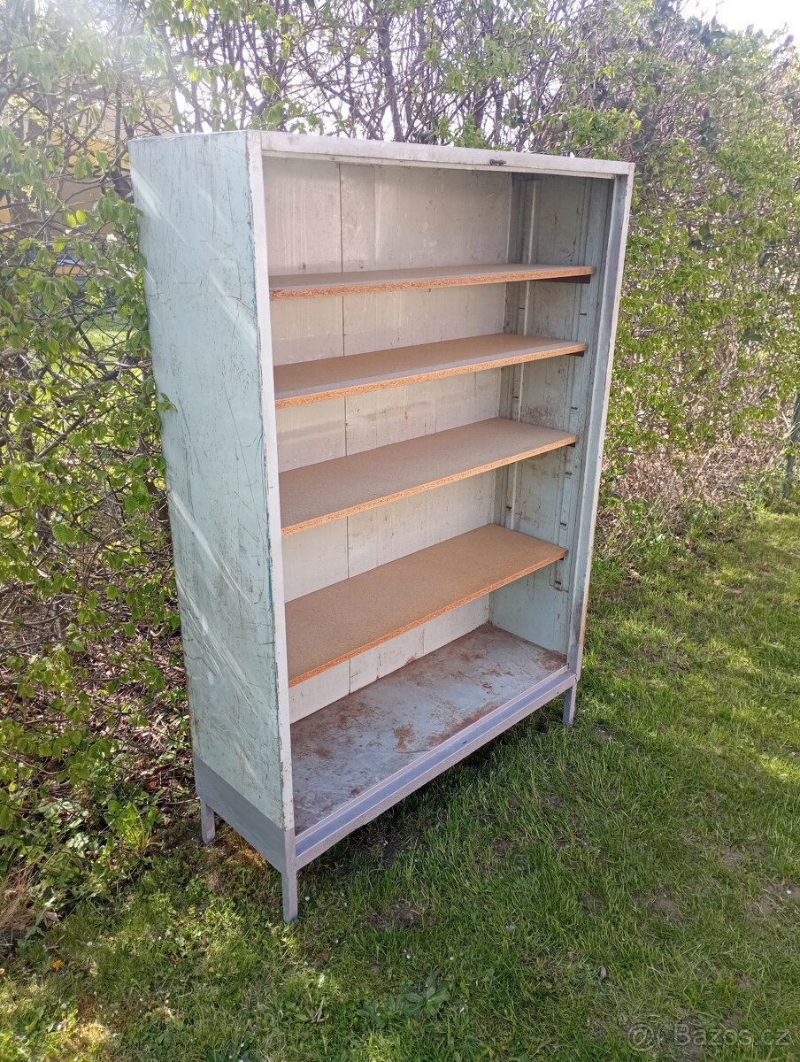 Prodám starší kovový regál - skříň. Rozměry 170 x 120 cm, šíře 40 cm.