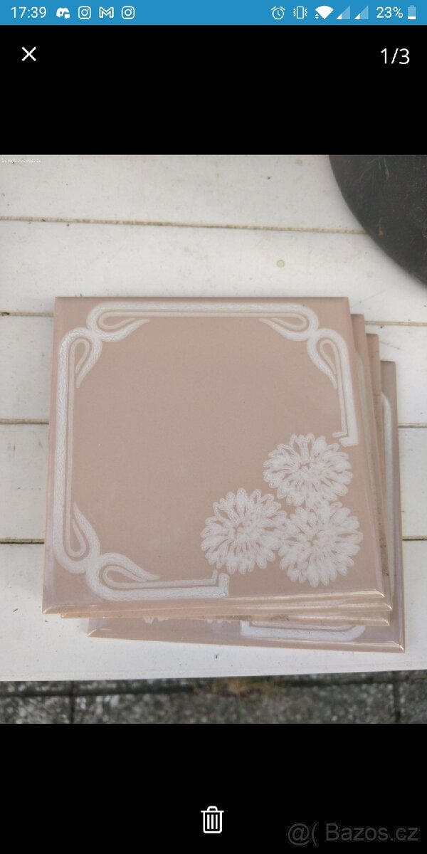 Retro dlaždice - 8x foto - [4.4. 2026]Z pozůstalosti retro dlaždice 1.foto zelená dlaždice RAKO,25x20cm,1,3/4 m,cena 315,-Kč 2.foto světle hnědá dlaždice RAKO,15x15cm,3/4 m,cena 135,-Kč 3.foto světle hnědá dlaždice Chlumčany /dlažba/,29,5x29,5cm,1/2m cena 100,-Kč 4.foto světle hnědá dlaž ...